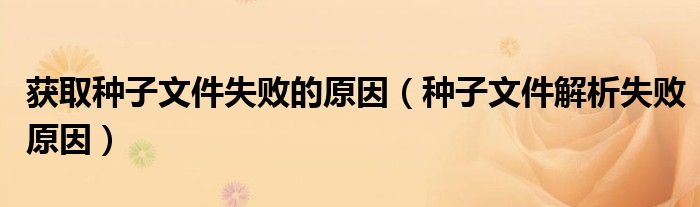 大家好,跳跳为你解答以上问题。获取种子文件失败的原因,种子文件解析失败原因这个问题很多人还不知道,现在让我们一起来看看吧!