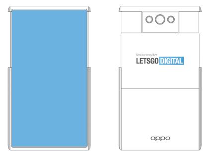 但它最有趣的方面肯定是其可扩展的显示,从顶部的缺口开始延伸。从背面,您还可以看到三合一摄像头模块也随之升高。设备的侧面展示了一个细长的按钮,该按钮可用于启用此扩展机制。尽管以前已经看到过类似的带有可扩展显示屏的智能手机,但Oppo专利设备的显示屏扩展了很多。