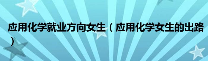 大家好,小晋来为大家解答以下问题,关于应用化学就业方向女生,应用化学女生的出路很多人还不知道,今天让我们一起来看看吧!