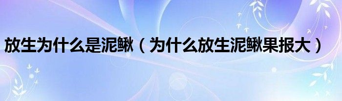 放生为什么是泥鳅(为什么放生泥鳅果报大)