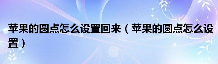 大家好,小晋来为大家解答以下问题,关于苹果的圆点怎么设置回来,苹果的圆点怎么设置很多人还不知道,今天让我们一起来看看吧!