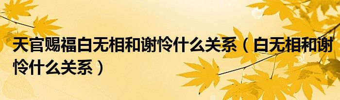 大家好,小晋来为大家解答以下问题,关于天官赐福白无相和谢怜什么关系,白无相和谢怜什么关系很多人还不知道,今天让我们一起来看看吧!