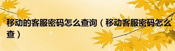 移动的客服密码怎么查询(移动客服密码怎么查)