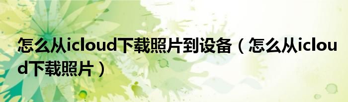 大家好,小晋来为大家解答以下问题,关于怎么从icloud下载照片到设备,怎么从icloud下载照片很多人还不知道,今天让我们一起来看看吧!