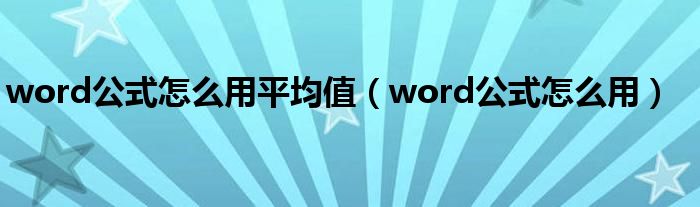 word公式怎么用平均值(word公式怎么用)