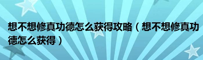 大家好,小晋来为大家解答以下问题,关于想不想修真功德怎么获得攻略,想不想修真功德怎么获得很多人还不知道,今天让我们一起来看看吧!