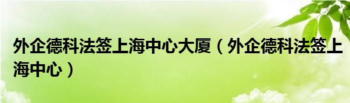 外企德科法签上海中心大厦(外企德科法签上海中心)