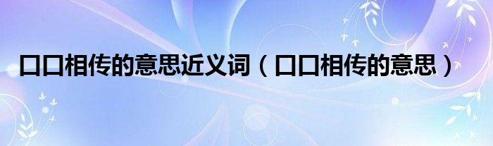 大家好,小晋来为大家解答以下问题,关于口口相传的意思近义词,口口相传的意思很多人还不知道,今天让我们一起来看看吧!