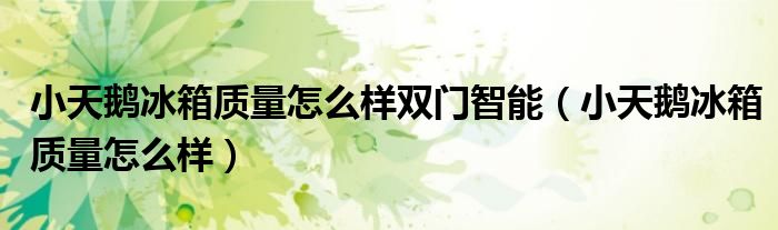 关于小天鹅冰箱质量怎么样双门智能,小天鹅冰箱质量怎么样这个很多人还不知道,今天菲菲来为大家解答以上的问题,现在让我们一起来看看吧!