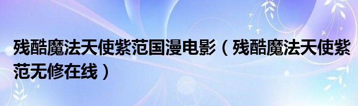 关于残酷魔法天使紫范国漫电影,残酷魔法天使紫范无修在线这个很多人还不知道,今天菲菲来为大家解答以上的问题,现在让我们一起来看看吧!