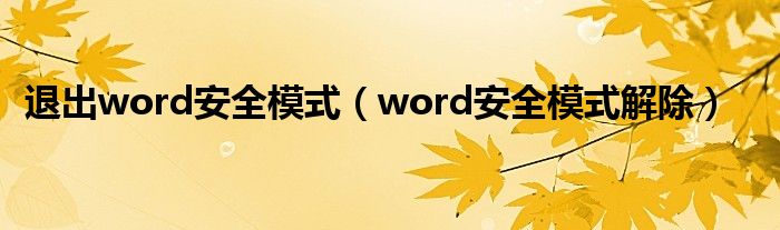 退出word安全模式(word安全模式解除)