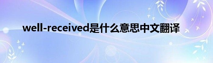关于well-received是什么意思中文翻译这个很多人还不知道,今天菲菲来为大家解答以上的问题,现在让我们一起来看看吧!