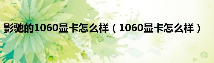 大家好,小晋来为大家解答以下问题,关于影驰的1060显卡怎么样,1060显卡怎么样很多人还不知道,今天让我们一起来看看吧!