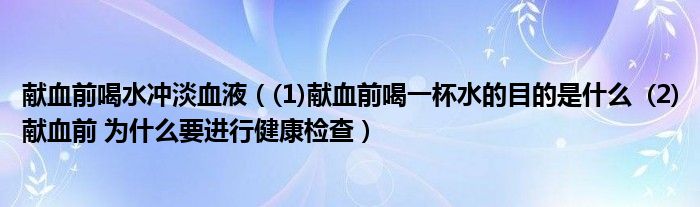 献血前喝水冲淡血液((1)献血前喝一杯水的目的是什么 (2)献血前 为什么要进行健康检查)