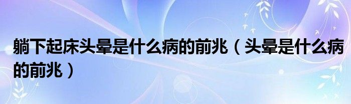 关于躺下起床头晕是什么病的前兆,头晕是什么病的前兆这个很多人还不知道,今天菲菲来为大家解答以上的问题,现在让我们一起来看看吧!
