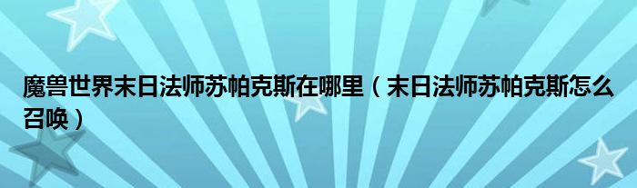 魔兽世界末日法师苏帕克斯在哪里(末日法师苏帕克斯怎么召唤)