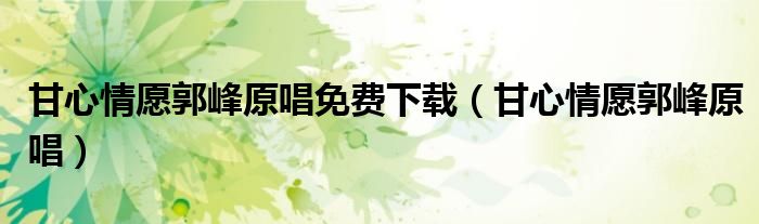 大家好,小晋来为大家解答以下问题,关于甘心情愿郭峰原唱免费下载,甘心情愿郭峰原唱很多人还不知道,今天让我们一起来看看吧!