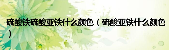 大家好,小晋来为大家解答以下问题,关于硫酸铁硫酸亚铁什么颜色,硫酸亚铁什么颜色很多人还不知道,今天让我们一起来看看吧!