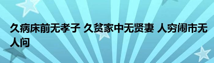 久病床前无孝子久贫家中无贤妻人穷闹市无人问
