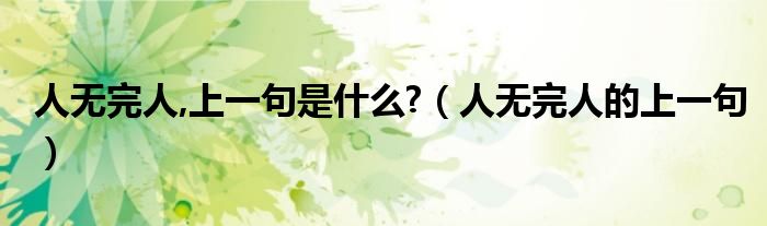 大家好,小晋来为大家解答以下问题,关于人无完人,上一句是什么?,人无完人的上一句很多人还不知道,今天让我们一起来看看吧!