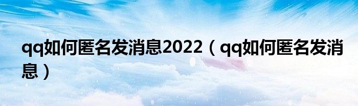 qq如何匿名发消息2022(qq如何匿名发消息)