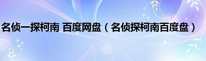 名侦一探柯南 百度网盘(名侦探柯南百度盘)