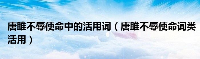 关于唐雎不辱使命中的活用词,唐雎不辱使命词类活用这个很多人还不知道,今天菲菲来为大家解答以上的问题,现在让我们一起来看看吧!