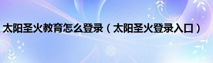 太阳圣火教育怎么登录(太阳圣火登录入口)