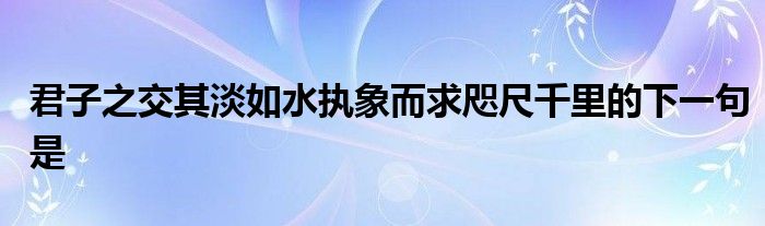 关于君子之交其淡如水执象而求咫尺千里的下一句是这个很多人还不知道,今天菲菲来为大家解答以上的问题,现在让我们一起来看看吧!