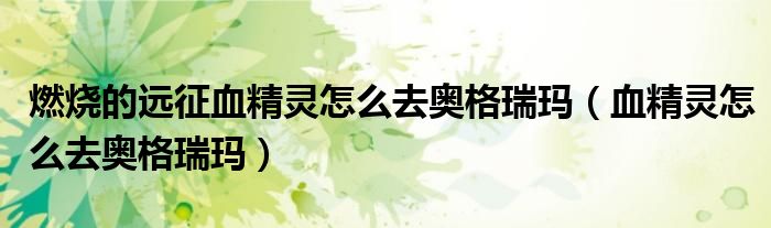 燃烧的远征血精灵怎么去奥格瑞玛(血精灵怎么去奥格瑞玛)