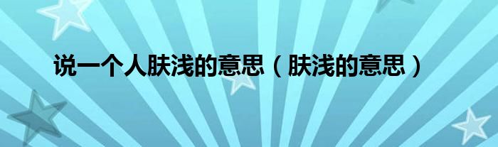 关于说一个人肤浅的意思,肤浅的意思这个很多人还不知道,今天菲菲来为大家解答以上的问题,现在让我们一起来看看吧!
