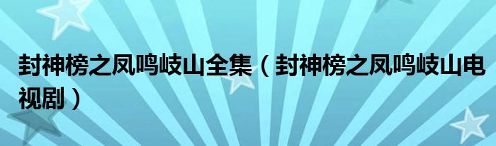 关于封神榜之凤鸣岐山全集,封神榜之凤鸣岐山电视剧这个很多人还不知道,今天菲菲来为大家解答以上的问题,现在让我们一起来看看吧!