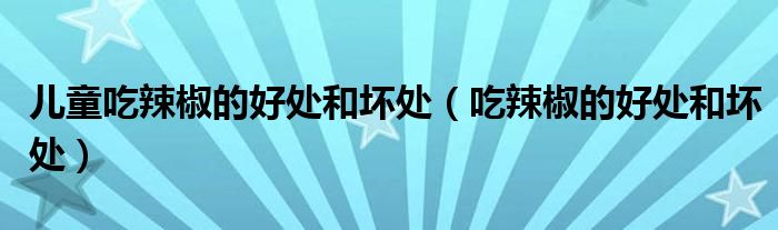 关于儿童吃辣椒的好处和坏处,吃辣椒的好处和坏处这个很多人还不知道,今天菲菲来为大家解答以上的问题,现在让我们一起来看看吧!