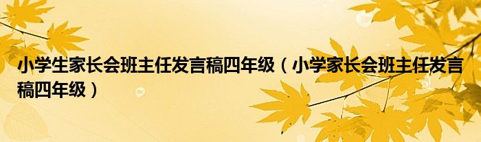 关于小学生家长会班主任发言稿四年级,小学家长会班主任发言稿四年级这个很多人还不知道,今天菲菲来为大家解答以上的问题,现在让我们一起来看看吧!