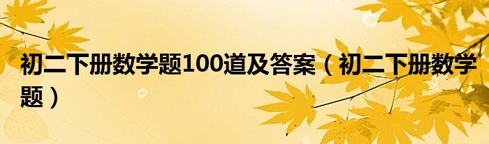 关于初二下册数学题100道及答案,初二下册数学题这个很多人还不知道,今天菲菲来为大家解答以上的问题,现在让我们一起来看看吧!