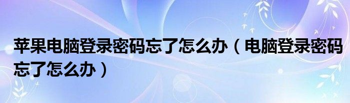 苹果电脑登录密码忘了怎么办(电脑登录密码忘了怎么办)
