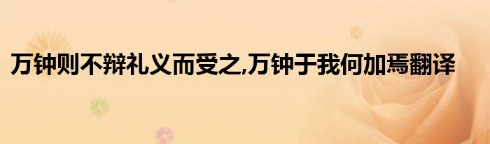 关于万钟则不辩礼义而受之,万钟于我何加焉翻译这个很多人还不知道,今天菲菲来为大家解答以上的问题,现在让我们一起来看看吧!