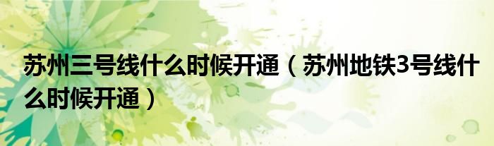 关于苏州三号线什么时候开通,苏州地铁3号线什么时候开通这个很多人还不知道,今天菲菲来为大家解答以上的问题,现在让我们一起来看看吧!
