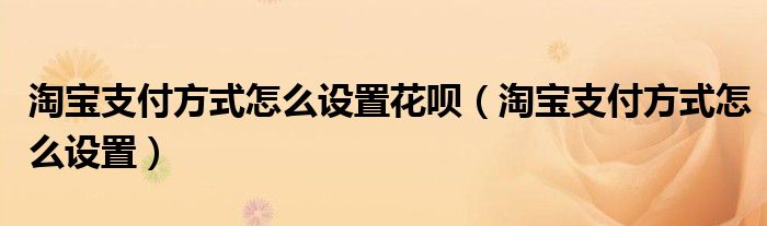 大家好,小晋来为大家解答以下问题,关于淘宝支付方式怎么设置花呗,淘宝支付方式怎么设置很多人还不知道,今天让我们一起来看看吧!