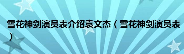 关于雪花神剑演员表介绍袁文杰,雪花神剑演员表这个很多人还不知道,今天菲菲来为大家解答以上的问题,现在让我们一起来看看吧!