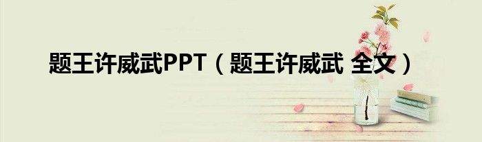 关于题王许威武PPT,题王许威武 全文这个很多人还不知道,今天菲菲来为大家解答以上的问题,现在让我们一起来看看吧!
