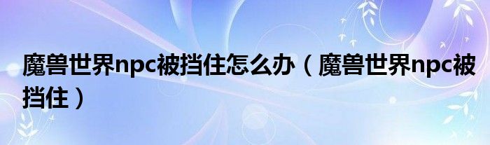 魔兽世界npc被挡住怎么办(魔兽世界npc被挡住)