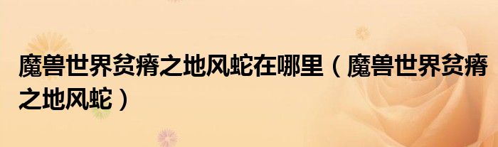 关于魔兽世界贫瘠之地风蛇在哪里,魔兽世界贫瘠之地风蛇这个很多人还不知道,今天菲菲来为大家解答以上的问题,现在让我们一起来看看吧!