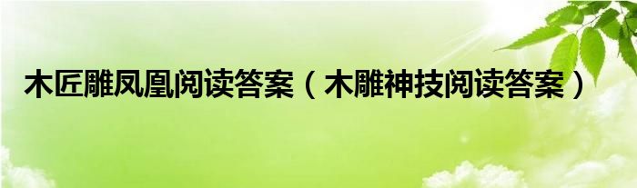 关于木匠雕凤凰阅读答案,木雕神技阅读答案这个很多人还不知道,今天菲菲来为大家解答以上的问题,现在让我们一起来看看吧!